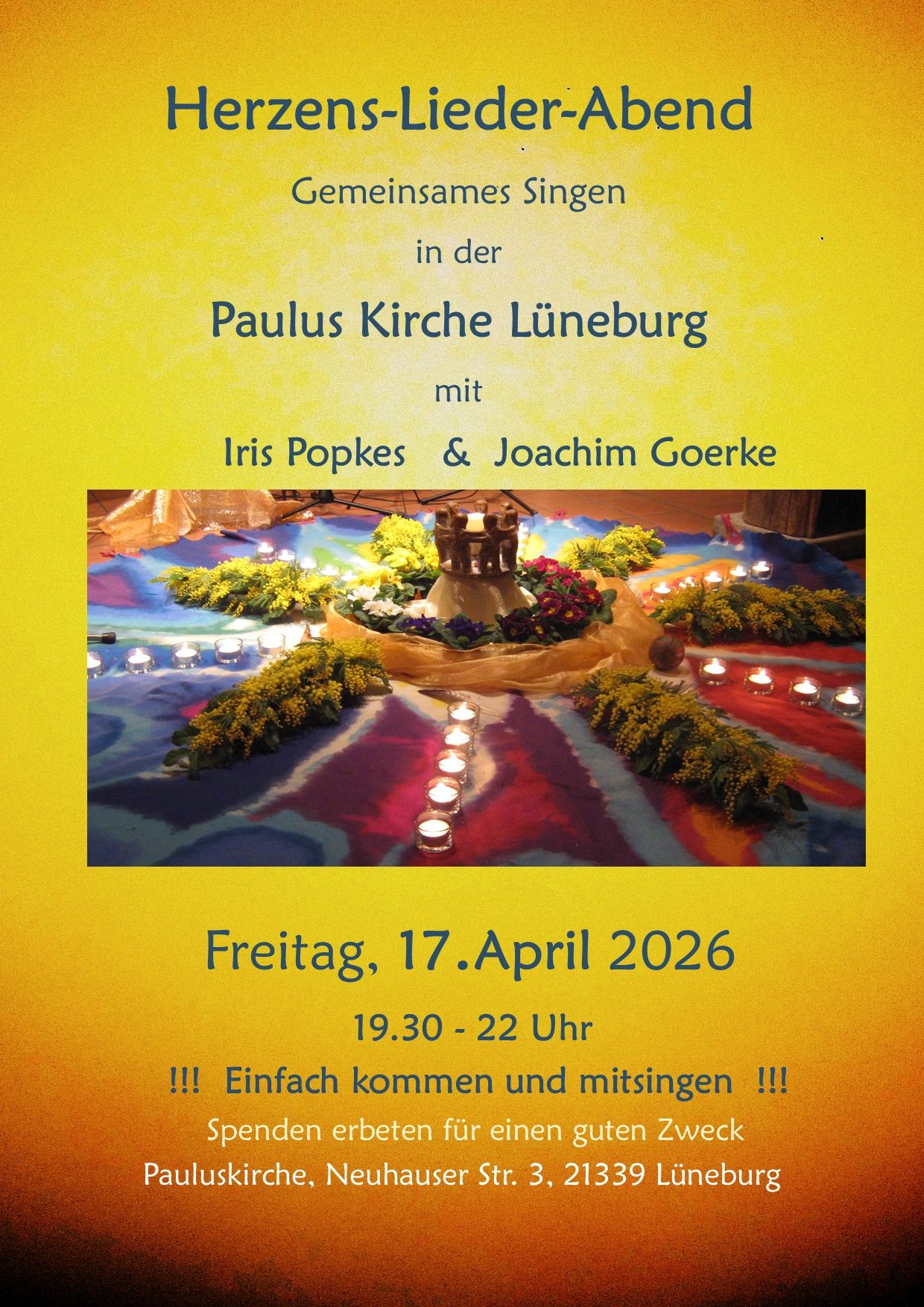 mit Joachim Goerke am 17.4.2026 von 19:30 - 22:30 Uhr und am 13.11.2026 von 19:30 - 22:30 Uhr in der Pauluskirche auf dem Kreideberg.